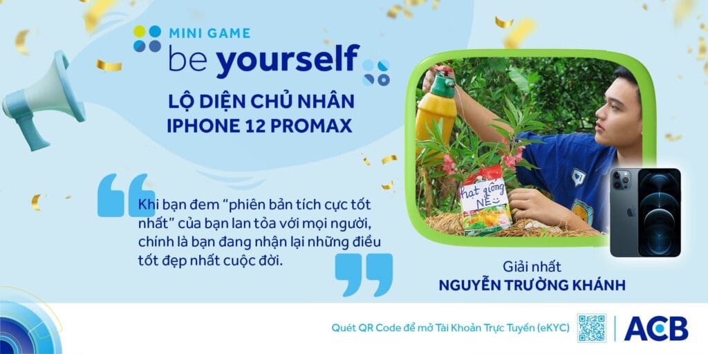 “Be Yourself” do Ngân hàng Á Châu ACB tổ chức không chỉ là một sân chơi sáng tạo, mà còn là lời kêu gọi đầy ý nghĩa trong bối cảnh giãn cách xã hội. Với thông điệp: “Hãy là chính bạn, với một phiên bản tích cực hơn”, cuộc thi đã tạo cơ hội để mọi người chia sẻ các hoạt động tích cực tại nhà, lan tỏa niềm vui và truyền cảm hứng đến cộng đồng.